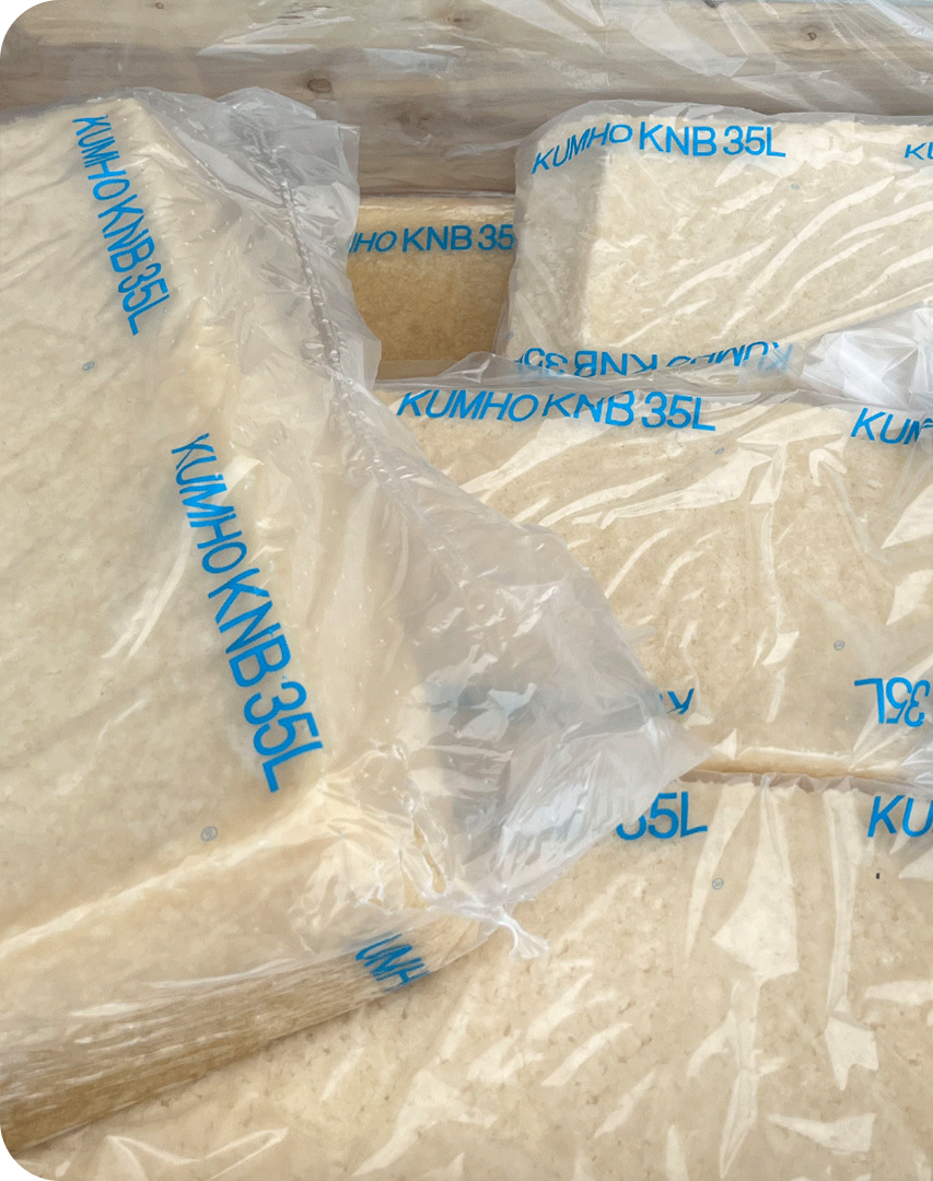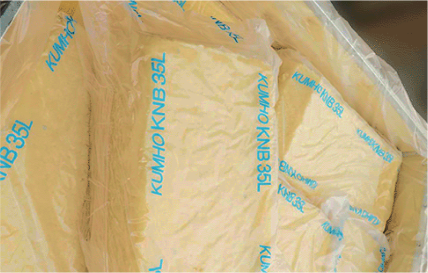 Hamiico supplies NBR 35L from KUMHO, made in Korea, delivered in light brown block form, palletized at 1050 kg — ensuring stable quality and industrial-grade packaging for demanding production lines.